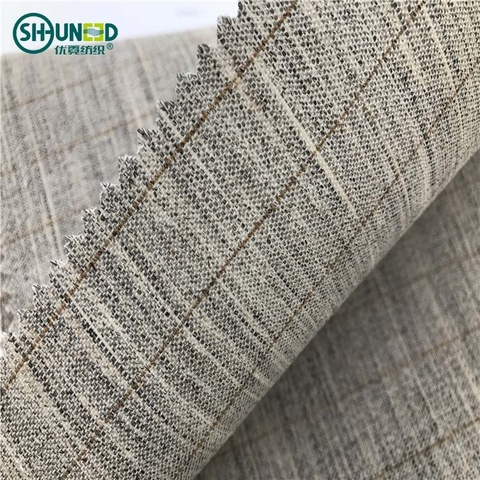 Fabrika özel dokuma dimi düz Polyester yapıştırıcı konfeksiyon Suit için yapışkan tela Wrap örgü tela